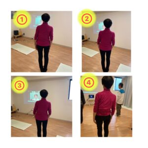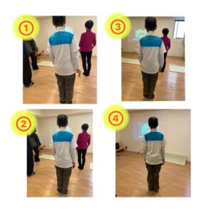 ②からは一つ一つアドバイスをもらって意識するだけで立ち姿がまっすぐに変化されているのが見受けられます。